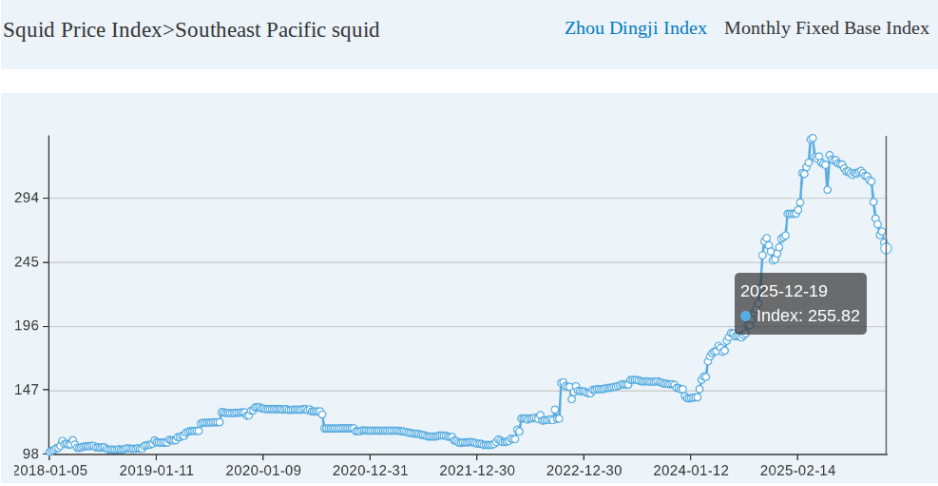 Chỉ số giá mực biển Trung Quốc đã trải qua sự sụt giảm mạnh trong những quý cuối năm 2025, do sản lượng đánh bắt kỷ lục ở Thái Bình Dương và sự thay đổi mùa vụ sắp xảy ra ở vùng biển Nam Mỹ.