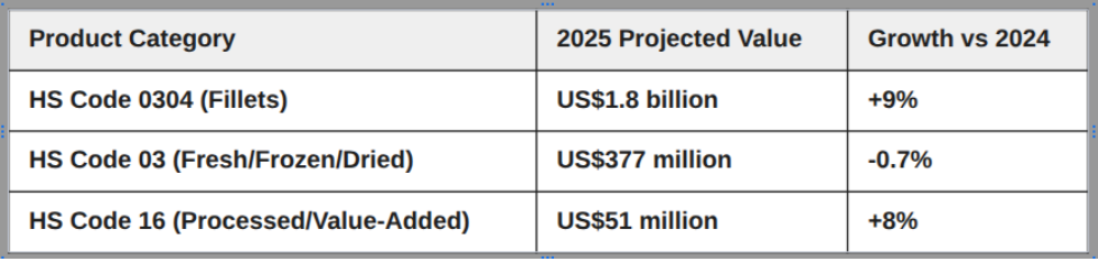 Chiến lược mở rộng: Để giảm thiểu tác động của thuế quan Mỹ, các nhà xuất khẩu đang ngày càng chuyển hướng sang các khu vực CPTPP, ASEAN và Trung Đông. Mặc dù Brazil vẫn là điểm sáng tăng trưởng cao, nhưng việc nước này hiện đang phụ thuộc vào phi lê đông lạnh cho thấy cơ hội đa dạng hóa sản phẩm.